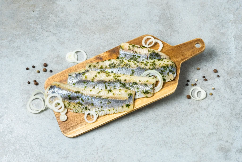 Soolatud Atlandi heeringafilee maitsetaimedega õlita