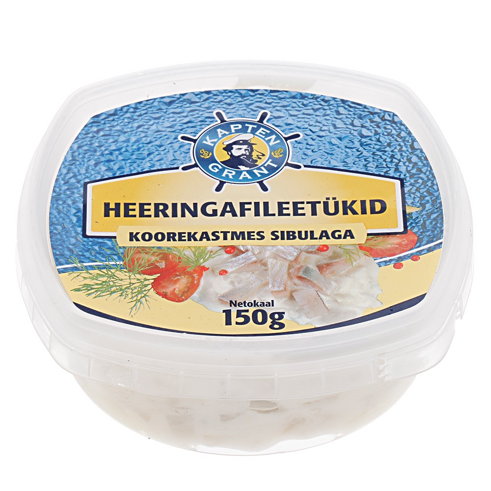 Marineeritud Atlandi heeringafilee nahata 35% (lad. Clupea harengus harengus), kalast; suhkur; sool; happesuse regulaatorid: E260, E330, E331, E575, E334; lõhna- ja maitsetugevdaja E621, dekstroos; säilitusained E211, E202); kaste 40% (vesi, rafineeritud rapsiseemneõli, suhkur, koorepulber (piimast) 1,2%, munapulber (munast), sool, paksendajad: E1414, E401, E412, happesuse regulaator: E260; säilitusained: E211, E202); marineeritud sibulad 25% (sibulad, suhkur, sool, happesuse regulaator E260).