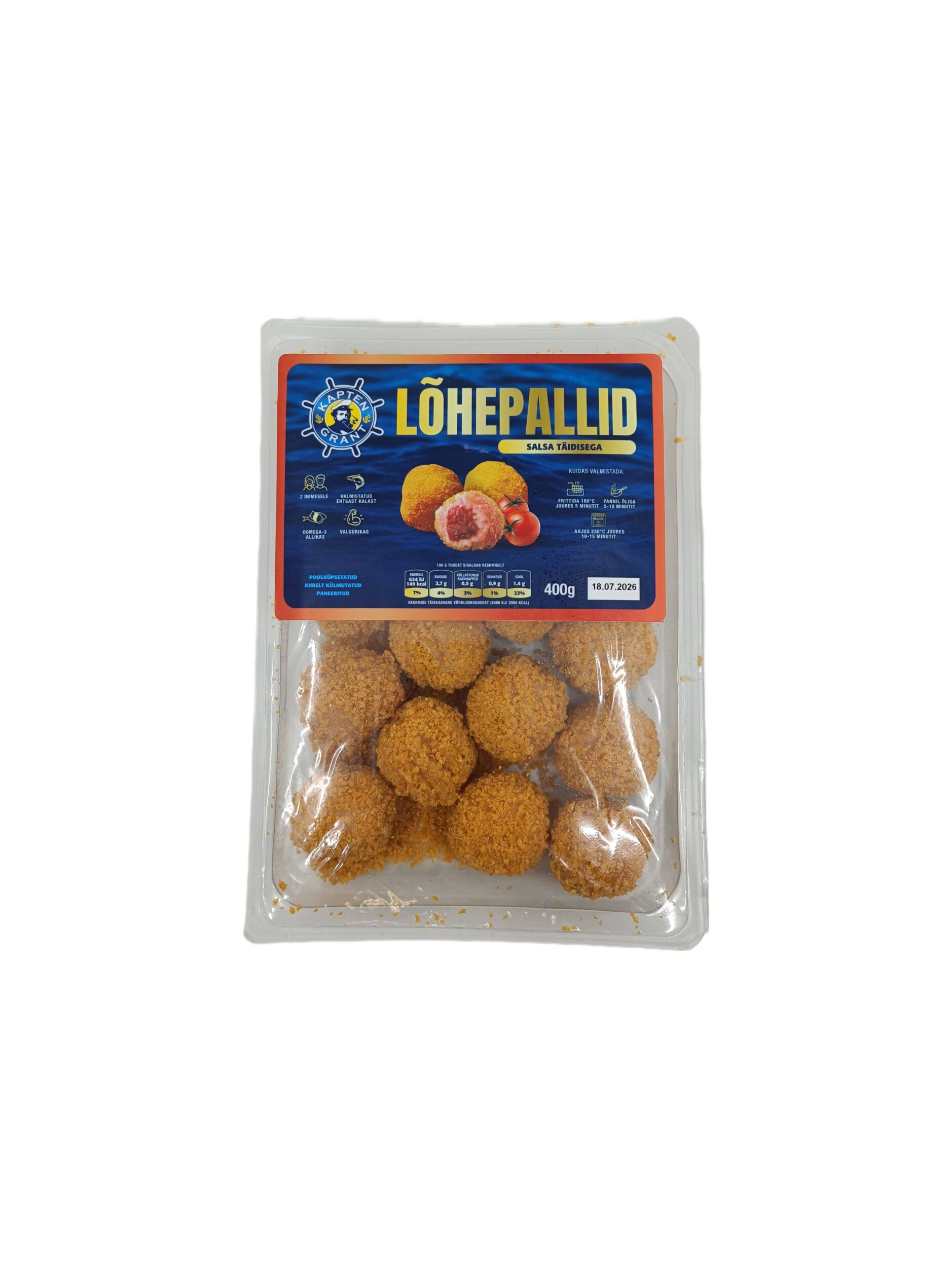 Lõheliha 34% (Salmo salar, kasvatatud Norras), vesi, nisujahu, sojavalk, nisukiud, sibulapulber, emulgaator (paksendajad (modifitseeritud tärklis), piimavalk, ksantaankummi, guarkummi), sool. Salsa täidis: vesi, vürtside segu 3%, juustupulber (modifitseeritud kartulitärklis, palmiõli, lõssipulber, piimavalk, nisutärklis, sool, värske juustu pihustuspulber, glükoosisiirup, hüdrolüüsitud taimne valk, nisukiud, pärmipulber, piimhape, kaltsiumlaktaat, guarkummi, lõhna- ja maitseaine). Paneering: riivsai 7% (nisujahu, dekstriin, kergitusaine, sool, värvaine (paprika õlivaik), emulgaator (rasvhapete mono- ja diglütseriidid)), taigen (nisujahu; modifitseeritud nisutärklis; sool; nisugluteen; paksendaja (ksantaankummi)), nisujahu, päevalilleõli.